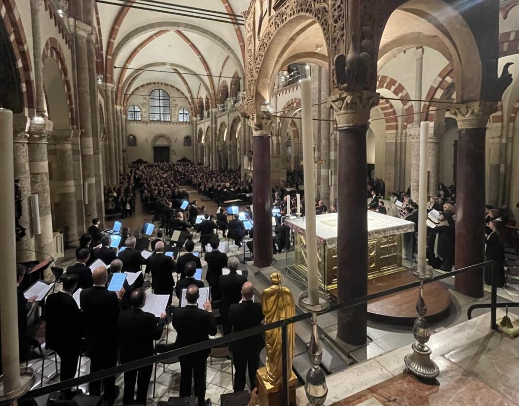 Nella cornice già carica di storia della Basilica di Sant’Ambrogio a Milano, il concerto del 3 dicembre, pensato per l’apertura del nuovo percorso culturale “Ambrosius, il Tesoro della Basilica”, e sostenuto da Auxologico di Milano e Carbo Terma metteva in dialogo due realtà che, come ha ricordato l’abate Carlo Faccendini citando Papa Ratzinger, “le due cose che concorrono in modo straordinario a rendere evidente la fede sono la vita dei santi e la bellezza che la fede ha prodotto nei secoli”. Sul versante musicale, l’Orchestra Sinfonica e il Coro Sinfonico di Milano, guidati da Julius Zeman, proponevano un programma interamente mozartiano: la Krönungsmesse in do maggiore K 317, l’Ave verum corpus K 618, Exsultate, jubilate K 165 e il Te Deum K 141, con Rosalia Cid (soprano), Mara Gaudenzi (mezzosoprano), Lorenzo Martelli (tenore), Davide Giangregorio (basso) e Massimo Fiocchi Malaspina maestro del coro.